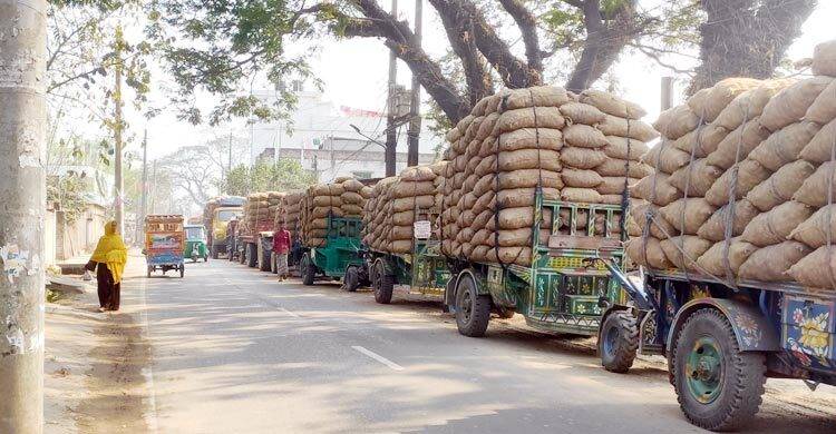 ‘কুড়িগ্রামের মোস্তফা হিমাগারোত তিন দিন ঘুরি আসছি আলুর স্লিপ পাই নাই। একজনে কইলো জাগা নাই। সব স্লিপ ব্যবসায়ীরা নিয়া গেইছে। এ্যলা হামার আলুর কি হইবে। কেনার মানুষ নাই। জমিতে ফ্যালে থুইছি। অহন আল্লা ভরসা।’