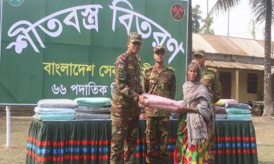 কুড়িগ্রামে বাংলাদেশ সেনাবাহিনীর উদ্যোগে অসহায় ও ছিন্নমূল ২শ শীতার্ত মানুষের মাঝে শীতবস্ত্র বিতরণ করা হয়েছে।