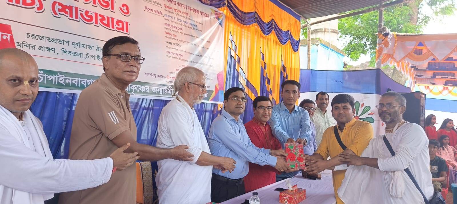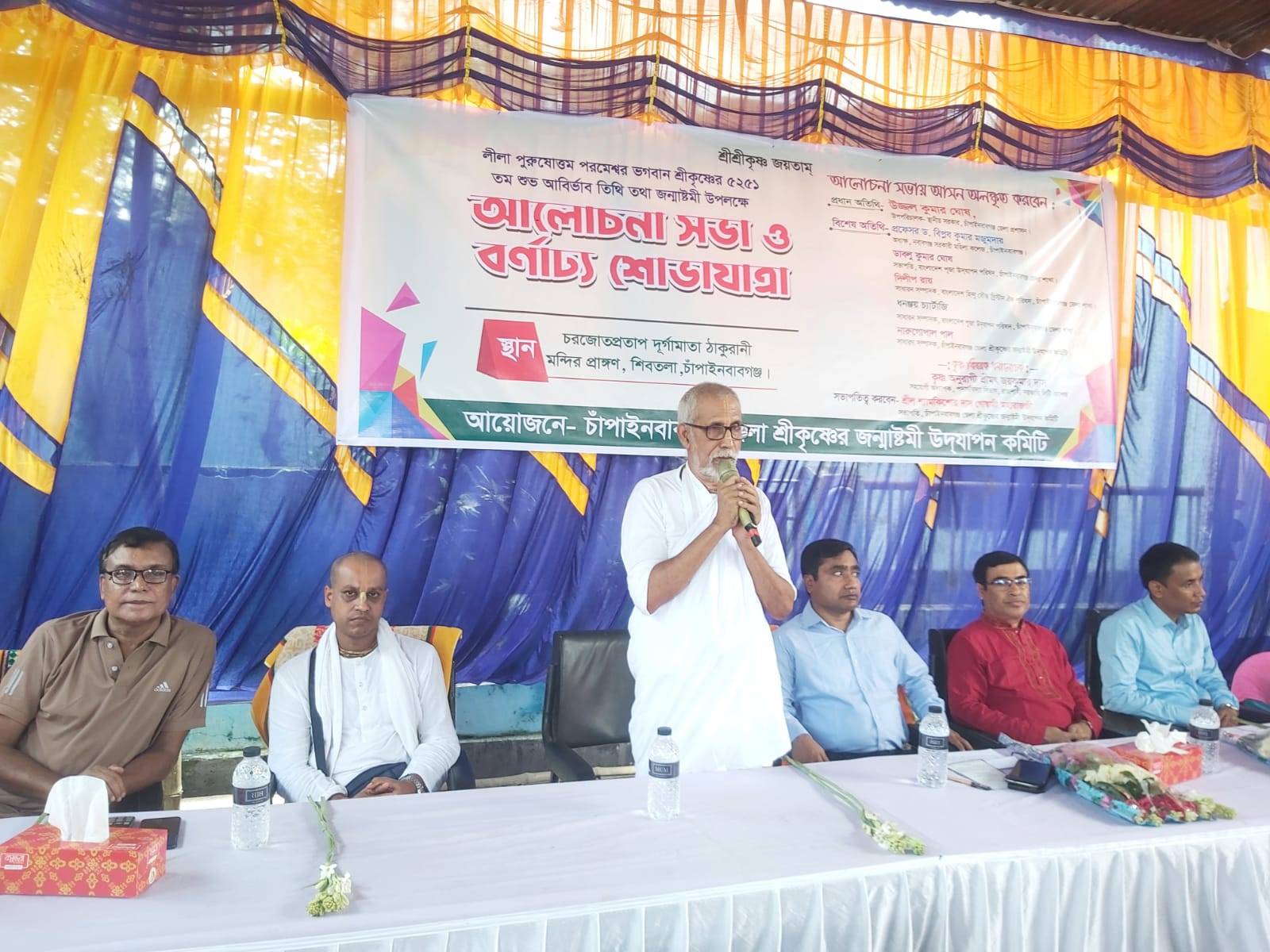জেলা শ্রীকৃষ্ণের জন্মাষ্টমী উদযাপন পরিষদের জেলা শ্রীকৃষ্ণের জন্মাষ্টমী উদযাপন কমিটির সভাপতি শ্রীল শ্যামকিশোর দাস গোস্বামী মহারাজজীর সভাপতিত্বে অনুষ্ঠিত সভায় প্রধান অতিথি’র বক্তব্য রাখেন, চাঁপাইনবাবগঞ্জের স্থানীয় সরকার বিভাগের উপপরিচালক উজ্জ্বল কুমার ঘোষ।