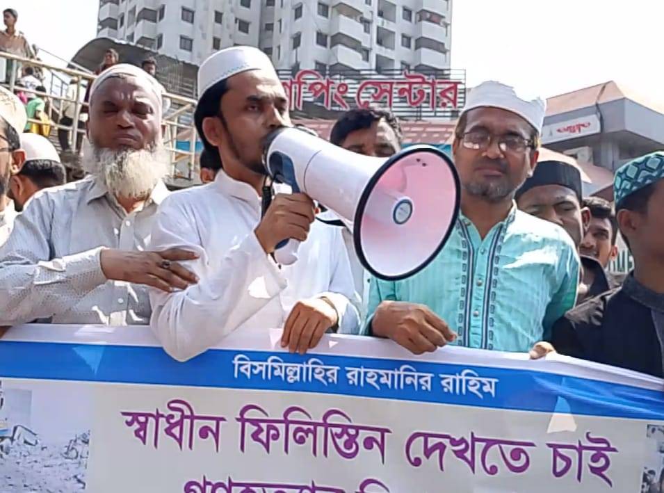 প্রতিবাদী বিক্ষোভ সমাবেশে বক্তারা বলেন, ইসরাইলী পণ্য সামগ্রী সম্পূর্ণ বর্জনের হুঁশিয়ারি উচ্চারণ করেন।