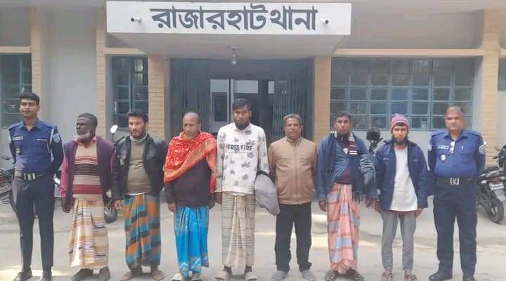 রাজারহাট থানার অফিসার ইনচার্জ রেজাউল করিম রেজা বলেন, গ্রেফতারী পরোয়ানা মূলে ৮ আসামীকে গ্রেফতার পূর্বক শনিবার জেল হাজতে প্রেরন করা হয়েছে।