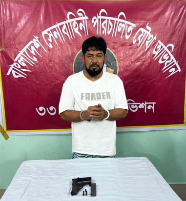 আটককৃত ব্যক্তির কাছ থেকে একটি চাইনিজ পিস্তল, একটি ম্যাগাজিন এবং দুটি পিস্তলের গুলি উদ্ধার করা হয়। পরবর্তীতে গ্রেপ্তারকৃত ব্যক্তি ও জব্দকৃত অস্ত্র তিতাস থানায় হস্তান্তর করা হয়।