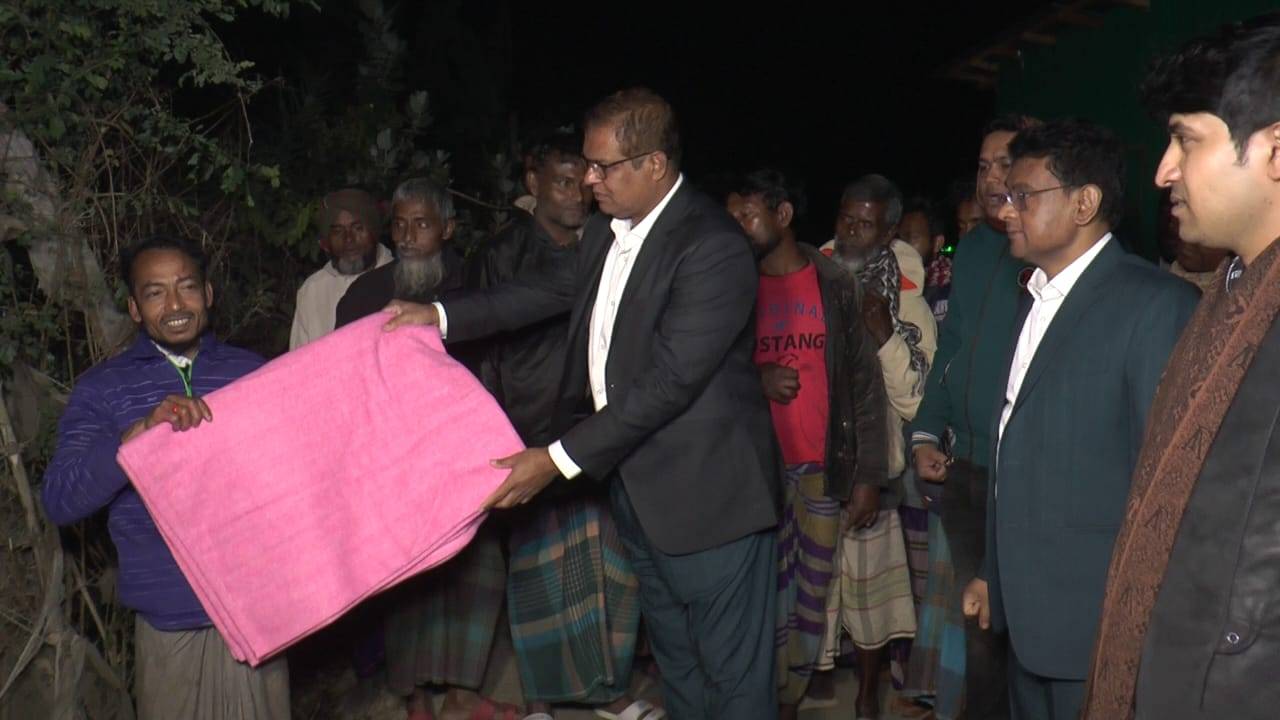 বুধবার রাতে ভোলার তুলাতুলি মেঘনা নদীর পাড়ের বিভিন্ন এলাকা ঘুরে দুই শতাধিক পরিবারের মাঝে নিজে শীতবস্ত্র হিসাবে কম্বল তুলে দেন। এসময় তিনি বেড়ি বাঁধের থাকা নিন্ম আয়ের মানুষের খোঁজ খবর নেন। রাতের আঁধারে ঘরের দুয়ারে জেলা প্রশাসককে কম্বল নিয়ে হাজির হতে দেখে আবেগে আপ্লুত হন বেড়ি বাঁধের এলাকার অসহায় শীতার্ত মানুষেরা।