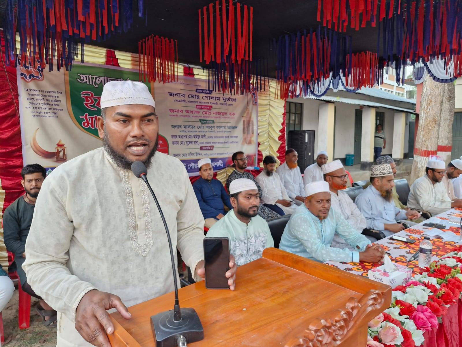 পবিত্র মাহে রমজান মাস উপলক্ষে রাজশাহীর চারঘাট পৌরসভা জামায়াতের উদ্যোগে আলোচনাসভা ও ইফতার মাহফিল অনুষ্ঠিত হয় শুক্রবার বিকেল ৫ টার চারঘাট বালিকা উচ্চ বিদ্যালয় মাঠে অনুষ্ঠান অনুষ্ঠিত হয়।