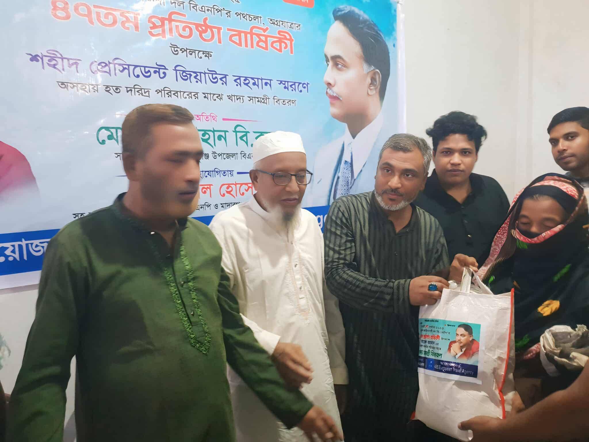 বাংলাদেশ জাতীয়তাবাদী দল বিএনপি'র পথচলা,অগ্রযাত্রার ৪৭ তম প্রতিষ্ঠা বার্ষিকি উপলক্ষে ও শহীদ প্রেসিডেন্ট জিয়াউর রহমানের স্মরণে অসহায় হতদরিদ্র পরিবারের মাঝে খাদ্য সামগ্রী বিতরণ করা হয়েছে।