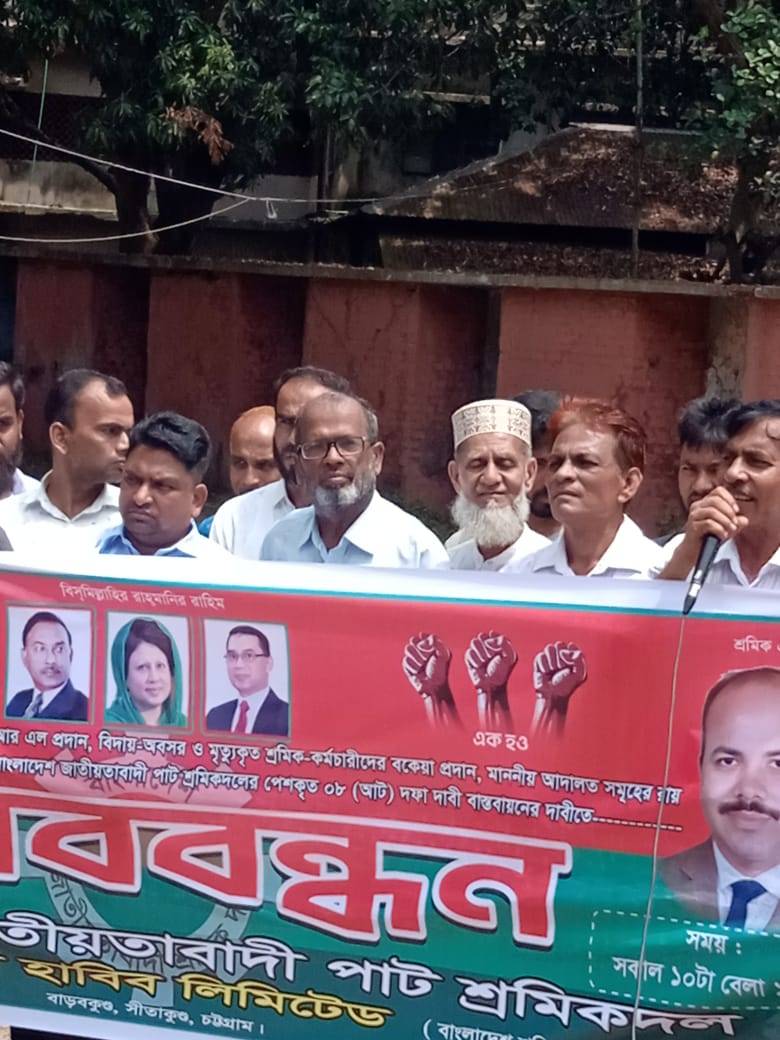 বাংলাদেশ জুট মিলস কর্পোরেশন( বিজেএমসি) নিযন্ত্রনাধীন রাষ্ট্রীয় ব্যবস্থাপনায় বন্ধ পাটকলের উৎপাদন কার্যক্রম চালু সহ আট দফা দাবিতে চট্টগ্রামের সীতাকুণ্ডে মানববন্ধন ও সমাবেশ করেছে বন্ধ পাঁচটি জুটমিল কারখানার শ্রমিকরা। আজ বুধবার (২৩ এপ্রিল) কেন্দ্রীয় কর্মসূচী বাস্তবায়নে সকাল সাড়ে ১০ থেকে ১১ টা প্রযন্ত একযোগে উপজেলার পাঁচটি বন্ধ মিল গেইটে যথাক্রমে গালফ্রা হাবিব লিমিটেড,আর আর জুট ও টেক্সটাইল,এম,এম,জুট মিলস,গুল আহমদ জুটমিল,হাফিজ জুট মিলস গেইটে এ মানববন্ধন ও সমাবেশের অনুষ্ঠিত হয়েছে।