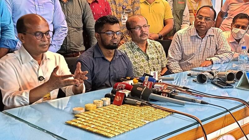 শুল্ক গোয়েন্দা বিভাগের কর্মকর্তাদের ফাঁকি দিয়ে বিমানবন্দরের গ্রিন চ্যানেল পার হয়ে পার্কিংস্থলে চলে যাওয়ার পর, এভিয়েশন শাখার কর্মকর্তারা তাকে চ্যালেঞ্জ করে পুনরায় গ্রিন চ্যানেলে নিয়ে আসেন। সেখানে তল্লাশি করে তার লাগেজে রক্ষিত জুস মেশিনে জড়ানো অবস্থায় ১০৭ পিস স্বর্ণের বার পাওয়া যায়।