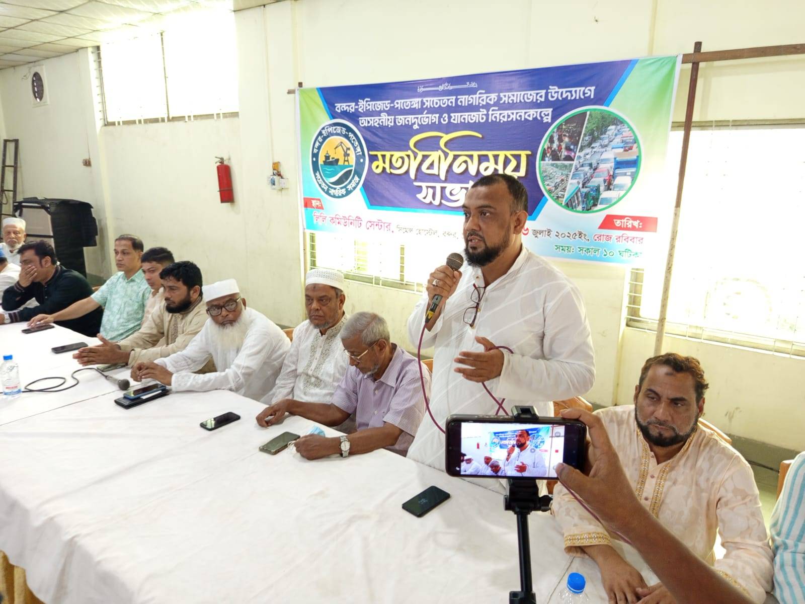 সমাজ সেবক- ব্যবসায়ী মোঃ আমিন স্ওদাগরের সভাপতিত্বে ও আয়োজন উদ্যোক্তা সাংবাদিক মোহাম্মদ হোসেনের সঞ্চালনায় অনুষ্ঠিত সভায় বিভিন্ন সমস্যা, জনদুর্ভোগ নিরাসন ও করণীয় সম্পর্কে গুরুত্বপূর্ণ বক্তব্য রাখেন বন্দর থানা সিটিজেন ফোরামের সভাপতি আলহাজ্ব মোঃ হানিফ সওদাগর ।
