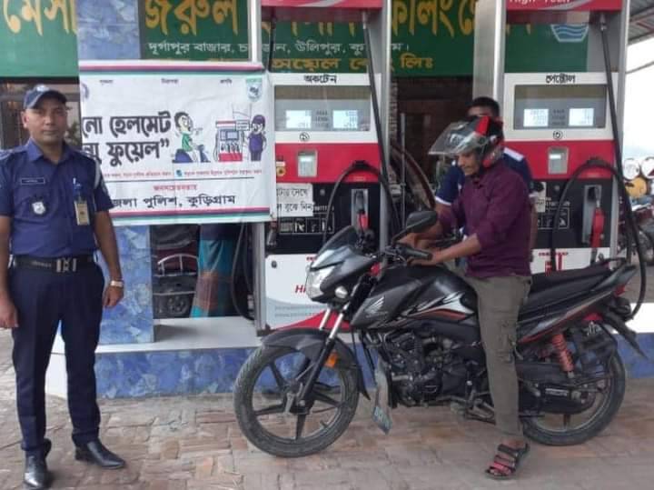 কুড়িগ্রামে জেলা পুলিশ 'নো হেলমেট, নো ফুয়েল' কার্যক্রম জোরদার করেছে। আজ ১৭ মে ২০২৪, শুক্রবার জেলা পুলিশের সকল ইউনিট একযোগে নো হেলমেট, নো ফুয়েল কার্যক্রমের লক্ষ্যে বিভিন্ন স্থানে মোটরসাইকেল চেকিং শুরু করে। কুড়িগ্রামে আজ ৫০৬ টি মোটরসাইকেল চেক করা হয়, ২৯৩ জনকে হেলমেট পড়তে প্রেরণা দেয়া হয়, সড়ক পরিবহন আইনে ৩৫ টি মামলা করা হয়, এবং কাগজপত্র না থাকায় বিআরটিএ তে রেজিস্ট্রেশন করবে ১৬টি মোটরসাইকেল আটক করা হয়, রেজিস্ট্রেশন সমাপনান্তে সেগুলো ফেরত দেয়া হবে।