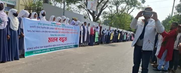 রোববার বিকেলে ওই কলেজের সামনে এ মানববন্ধন এবং বিক্ষোভ মিছিল করা হয়। এ সময় এলাকার কুচক্রী মহল কর্তৃক বিএনপির ভাইস-চেয়ারম্যান, সাবেক মন্ত্রী কাজী শাহ মোফাজ্জল হোসাইন কায়কোবাদ এবং উপজেলা বিএনপির আহবায়ক মহিউদ্দিন অঞ্জনের বিরুদ্ধে মিথ্যা প্রচারণার প্রতিবাদ করা হয়। এতে এলাকার বিভিন্ন শিক্ষা প্রতিষ্ঠানের বিপুল সংখ্যক শিক্ষার্থী এবং জনসাধারণ উপস্থিত ছিলেন।