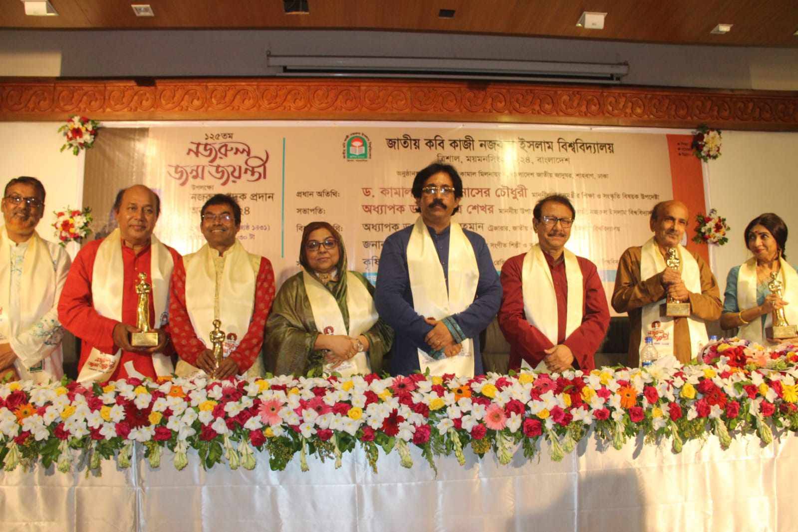 রাজধানীর জাতীয় জাদুঘরের কবি সুফিয়া কামাল মিলনায়তনে ৪ গুণী ব্যক্তিকে নজরুল পদক-২০২৪ প্রদানের মাধ্যমে শেষ হলো নজরুল বিশ্ববিদ্যালয় আয়োজিত ১২৫তম নজরুল জন্মজয়ন্তী। রোববার (০২ জুন) বিকেল সাড়ে ৪টায় অনুষ্ঠানে প্রধানমন্ত্রীর শিক্ষা ও সংস্কৃতি বিষয়ক উপদেষ্টা ড. কামাল আবদুল নাসের চৌধুরী প্রধান অতিথি হিসেবে ও নজরুল বিশ্ববিদ্যালয়ের উপাচার্য প্রফেসর ড. সৌমিত্র শেখর সভাপতি হিসেবে উপস্থিত থেকে ৪ গুনীর হাতে এই পদক তুলে দেন।