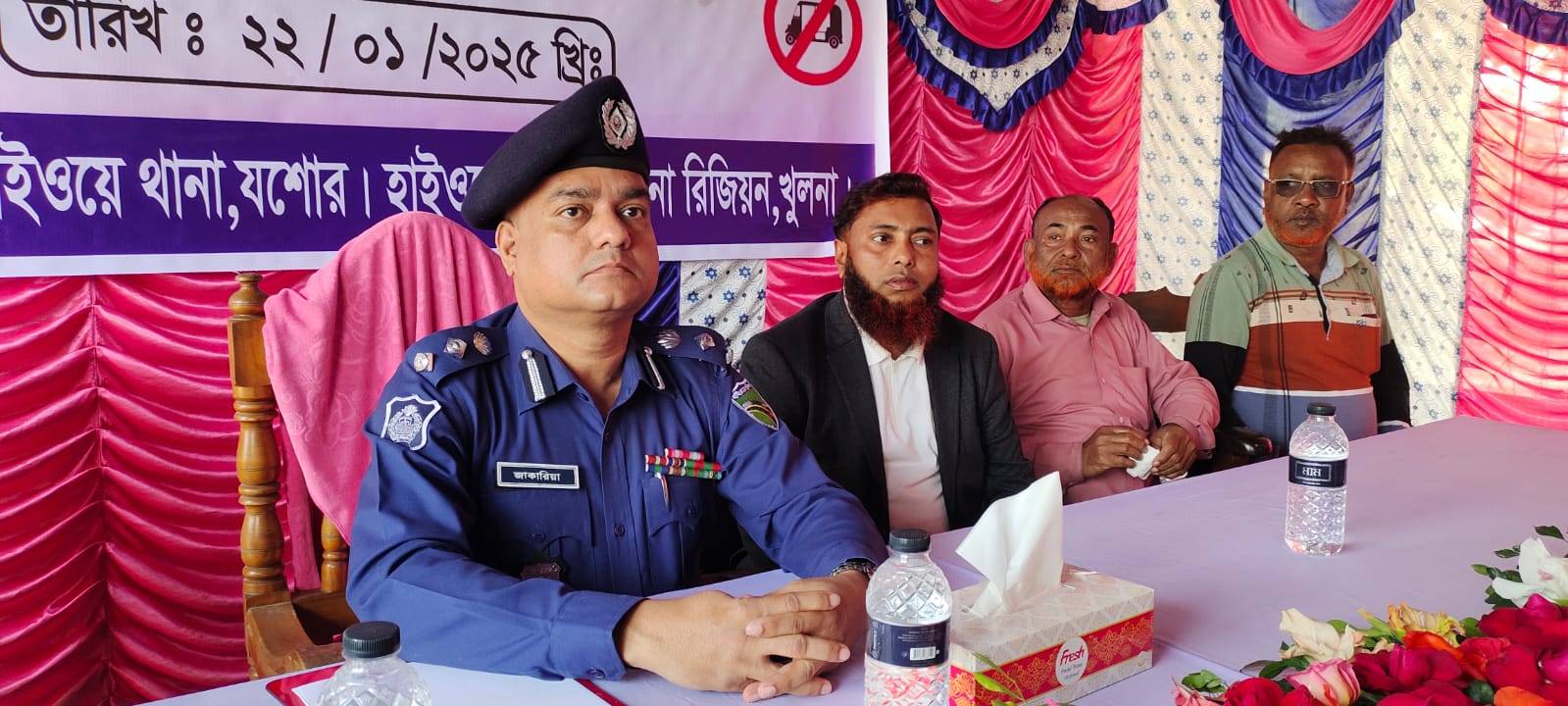 যশোরের ঝিকরগাছার 'গদখালী ফুলের রাজ্যে' সুশৃঙ্খল সুরক্ষিত নিরাপদ মহাসড়ক নিশ্চিতকল্পে সংশ্লিষ্ট বিভিন্ন পেশার কর্মজীবীদের নিয়ে,খুলনা রিজিয়ন হাইওয়ে পুলিশের এডিশনাল ডিআইজি জাকারিয়া মতবিনিময় সভা করেন।